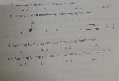 - Ang stick notation ng quarter note ay nagbibigay ng visual representation ng isang nota. Sa pamamagitan ng mga stick o talulot na guhit na nakasaad sa isang patlang, maaaring matukoy ang tamang posisyon at haba ng nota.
